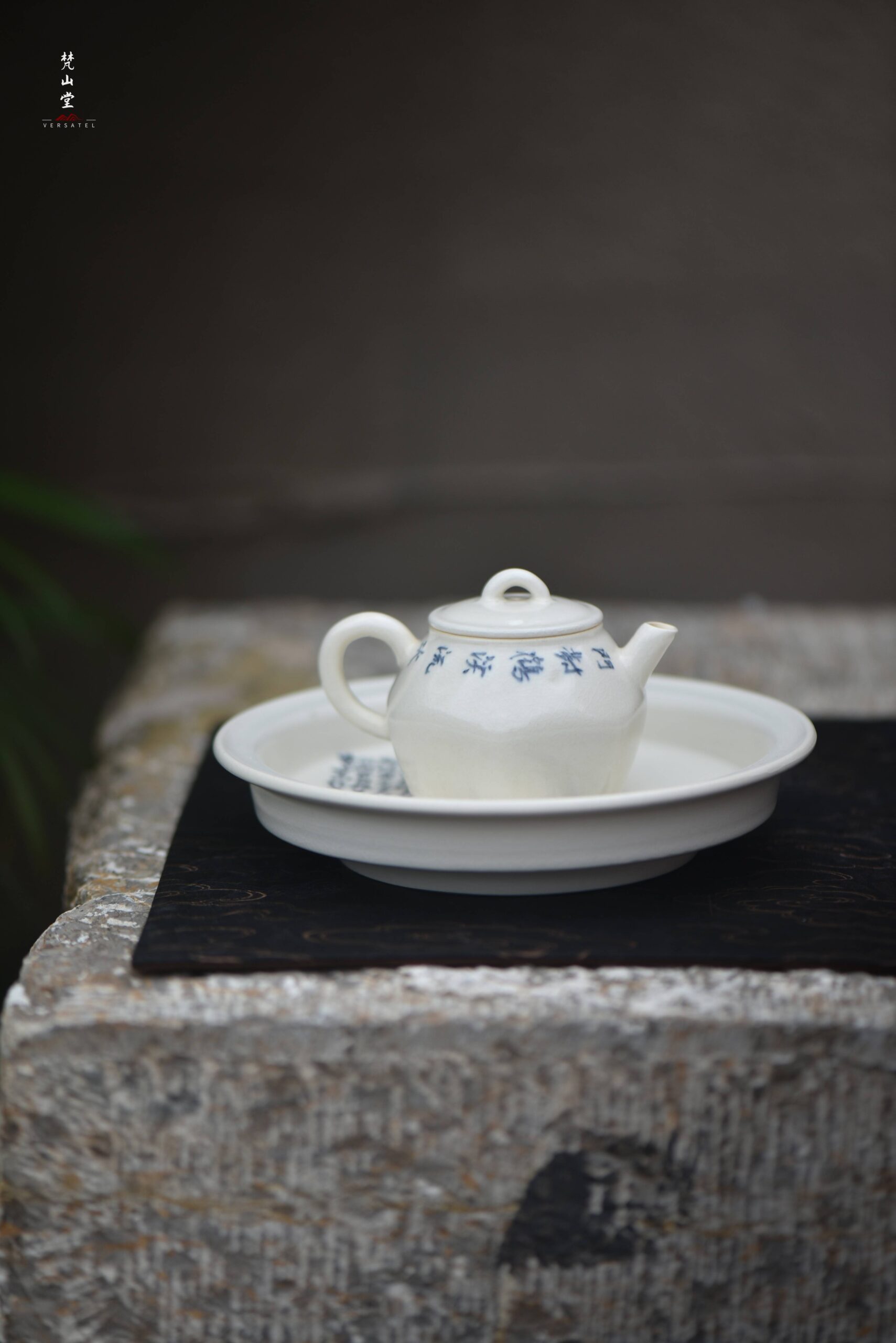 Beautiful Blue and White Bamboo Joint Poetry Hand-made Flat Teapot Stand from fanshantang.