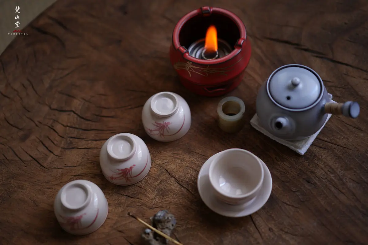 Beautiful Red Orchid Small Golden Bell Cup (Set of 4 Cups) from fanshantang.