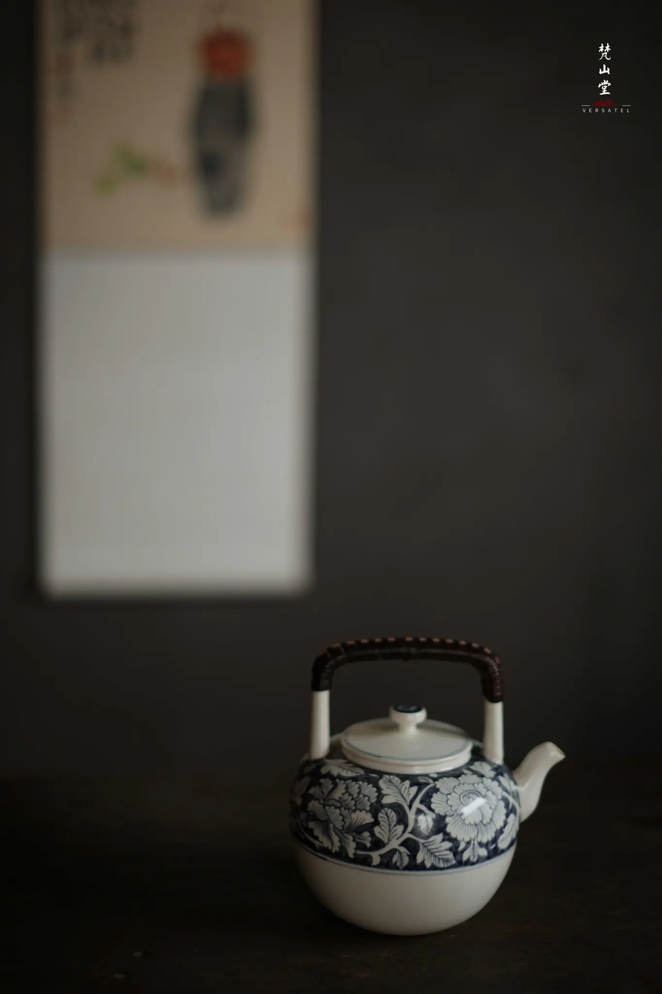 Beautiful Soda Glaze Blue and White Peony Small Wujing Teapot from fanshantang.
