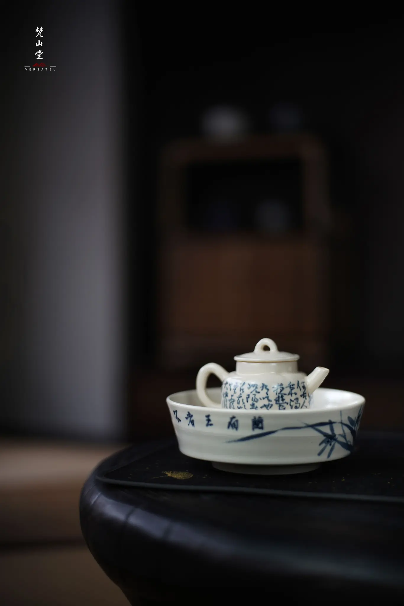 Beautiful Soda Glaze Blue and White Poetry Hand-kneaded 8 Teapot from fanshantang.